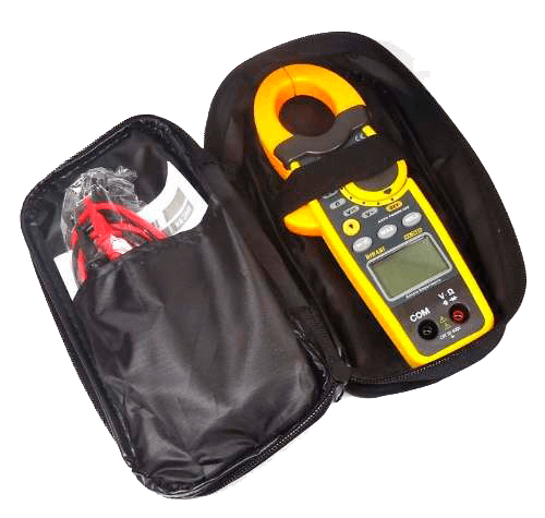 Instrumento digital portátil com mudança de faixa automático, de acordo com a categoria III 600V de segurança, LCD de 3 ½ dígitos com iluminação, congelamento de leitura, registro máximo e desligamento automático. Realiza medidas de tensão DC e AC, corrente AC, resistência e testes de diodo, continuidade.