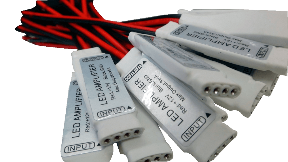 Esse Amplificador deverá a usado quando se deseja ligar mais de 5 metros de fita LED RGB em conjunto garantindo assim sua qualidade e maior defiinição das cores utilizando a mesma fonte e o mesmo controle.