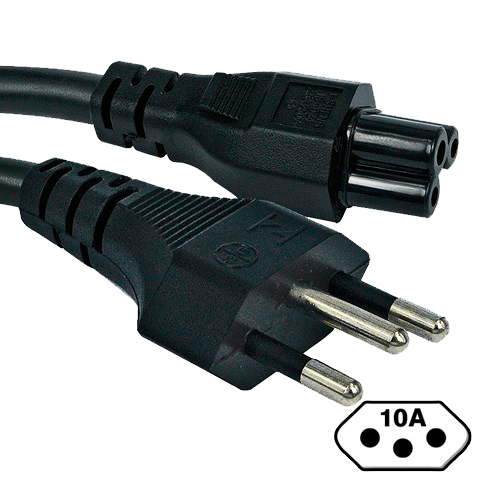 Cabo de força para conexão de equipamentos na rede elétrica. Produto de acordo com novo padrão Brasileiro de tomadas.