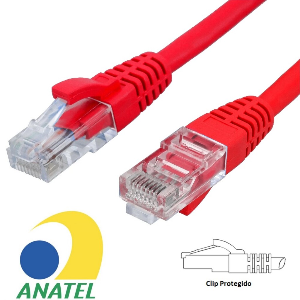 Cabo de rede Patch Cord Cat-6e com 1,5 metros 24AWG Vermelho ( ANATEL )