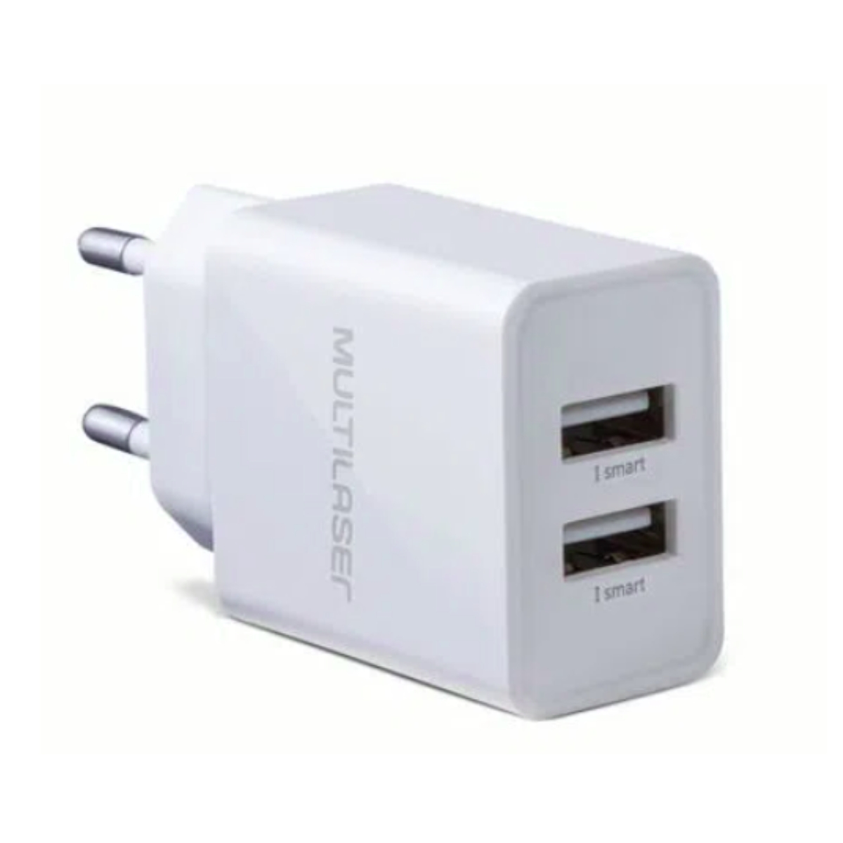 - Carregador de Parede AC USB 2 Portas TURBO 2.4A Multilaser