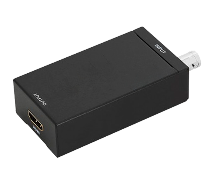 Conversor SDI para HDMI. Permite a conversão de sinal SDI em monitores e centrais HDMI. Solução de qualidade e pensada para ser fácil de usar. Não necessita de software de instalação e por ser um mini conversor, cabe em qualquer lugar.