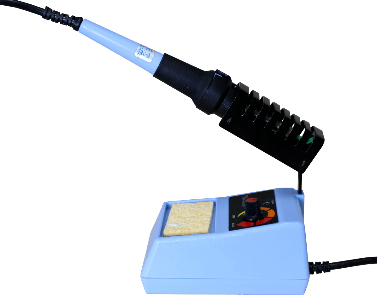 Este é um ferro de solda com resistência de 50w e com Temperatura ajustável entre 175°c e 480°c. Tem uma saída para aterramento anti-estático, com controle de temperatura com led indicado.
