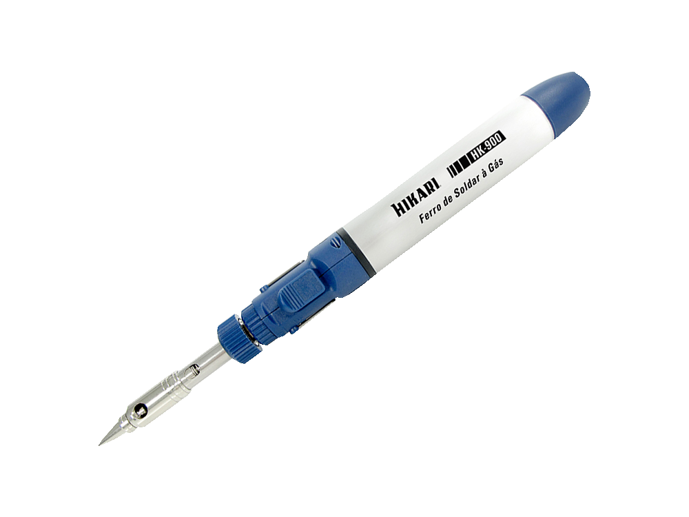 Ferro de soldar a gás, pode ser usado como soprador térmico e maçarico. Ideal para pequenos reparos em eletrônicos e eletroportáteis.