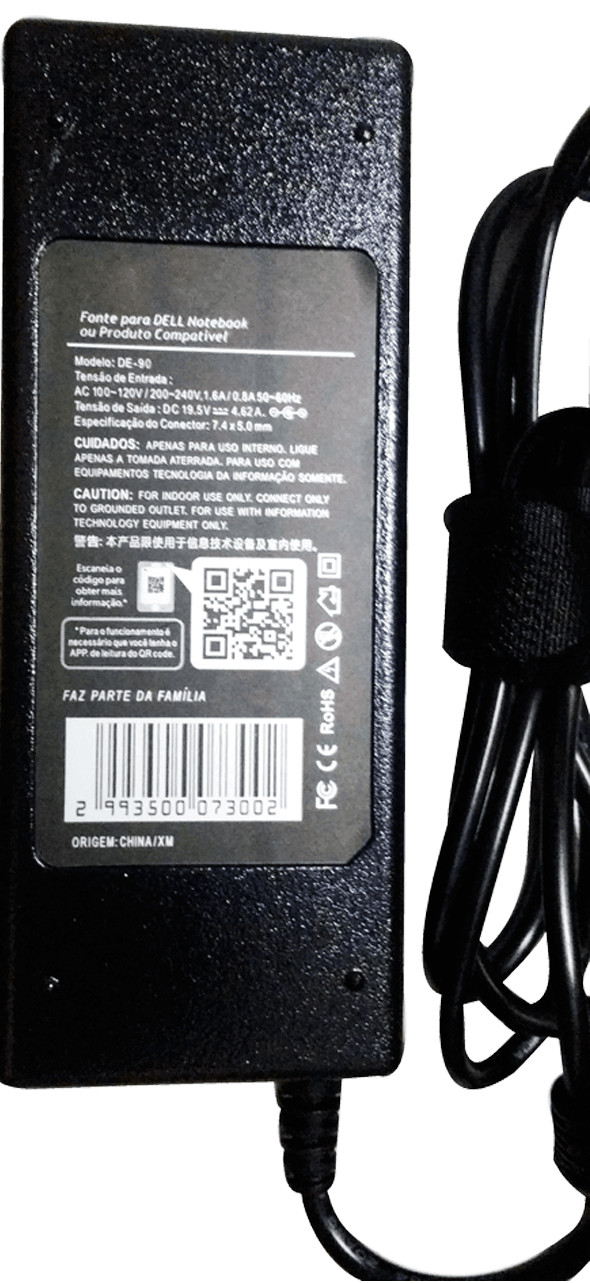 Fonte Notebook Dell 19.5V 4,62A 100-240V Bivolt
