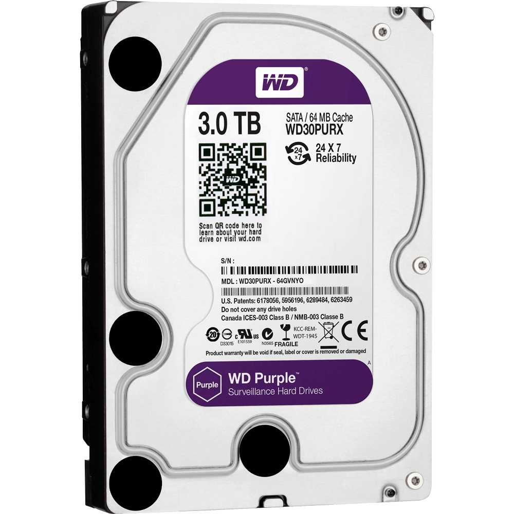 A Intelbras oferece HDs WD Purple de 1 TB, 2 TB, 3 TB, 4 TB, 6 TB, 8 TB, 10 TB e 12 TB. Todos com 3 anos de garantia e troca expressa.