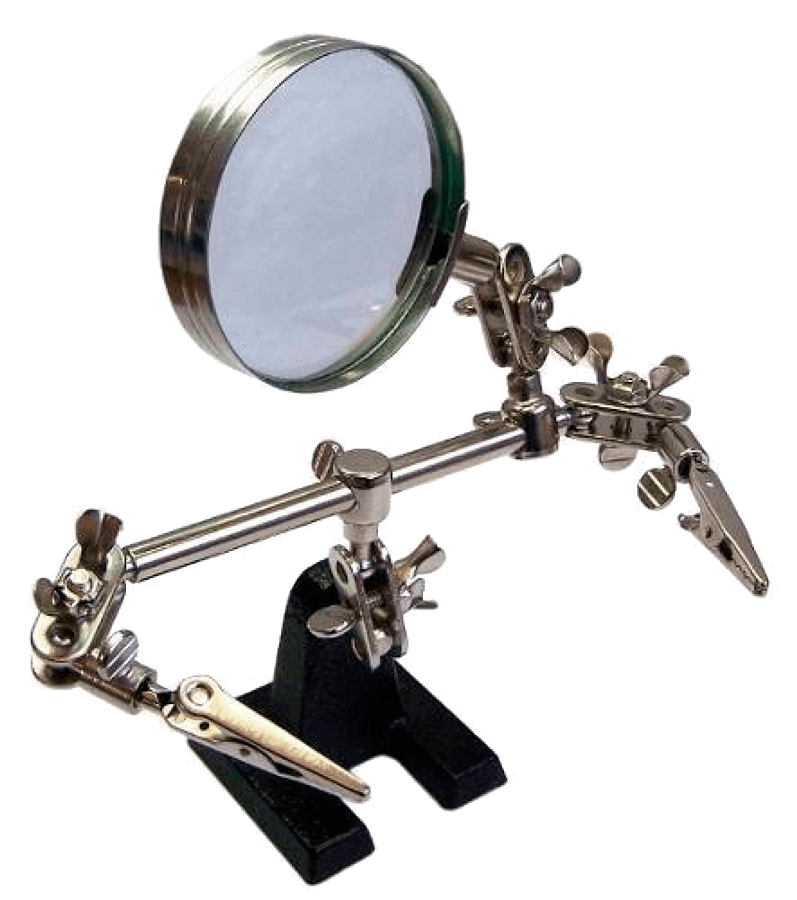 Lupa com suporte ideal para trabalhos de precisão que exijam fixação e aumento, como reparos em circuitos eletrônicos, serviços de joalheria e suporte para soldagem de pequenos cabos. Com o aumento de aproximadamente3x para facilitar ainda mais.