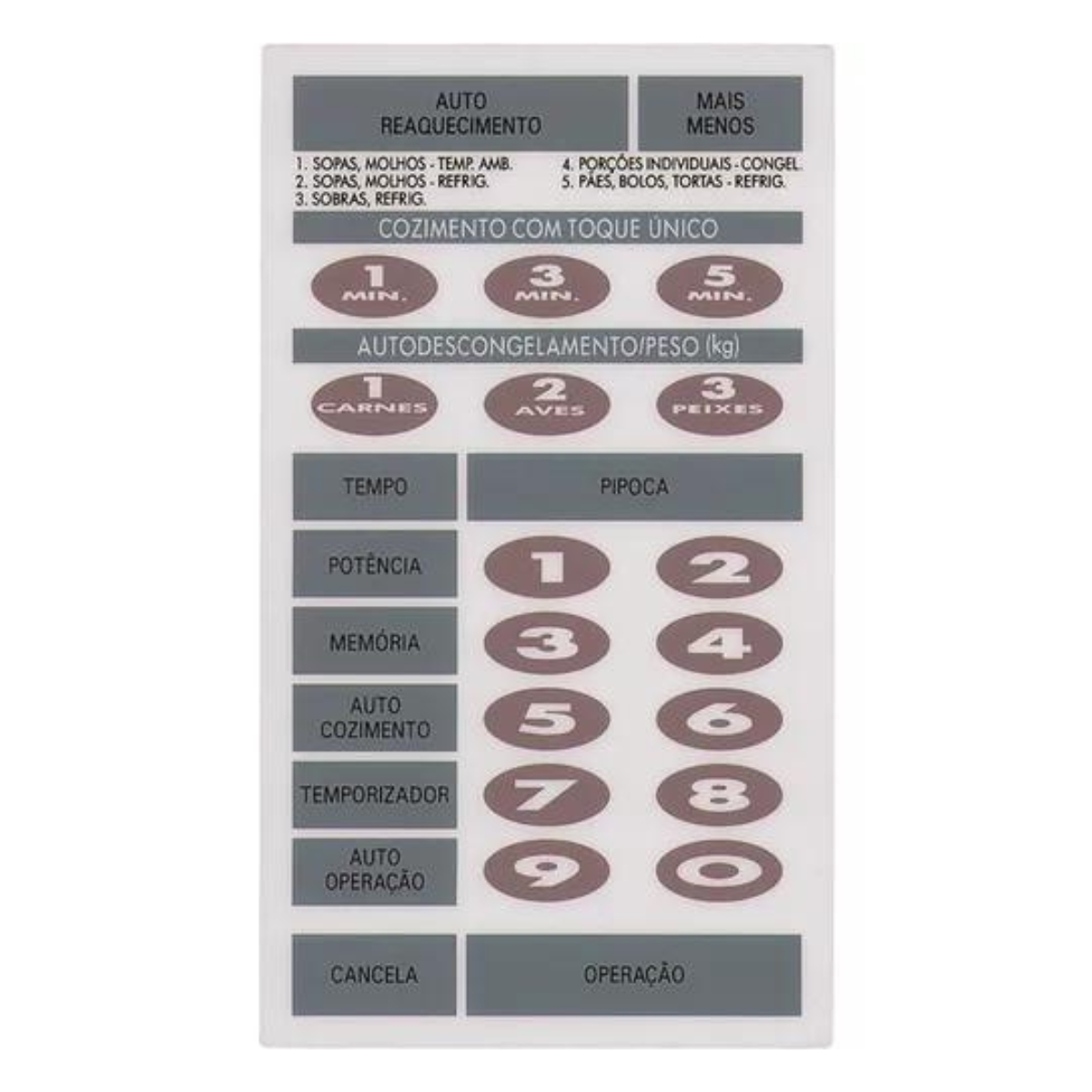 desgastada do painel de controle do micro-ondas.