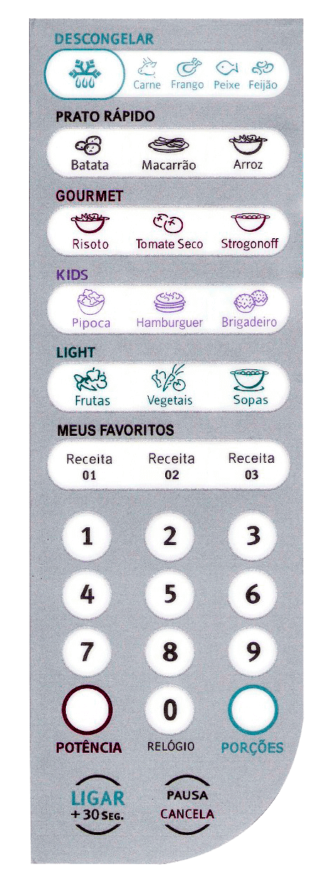 desgastada do painel de controle do micro-ondas.