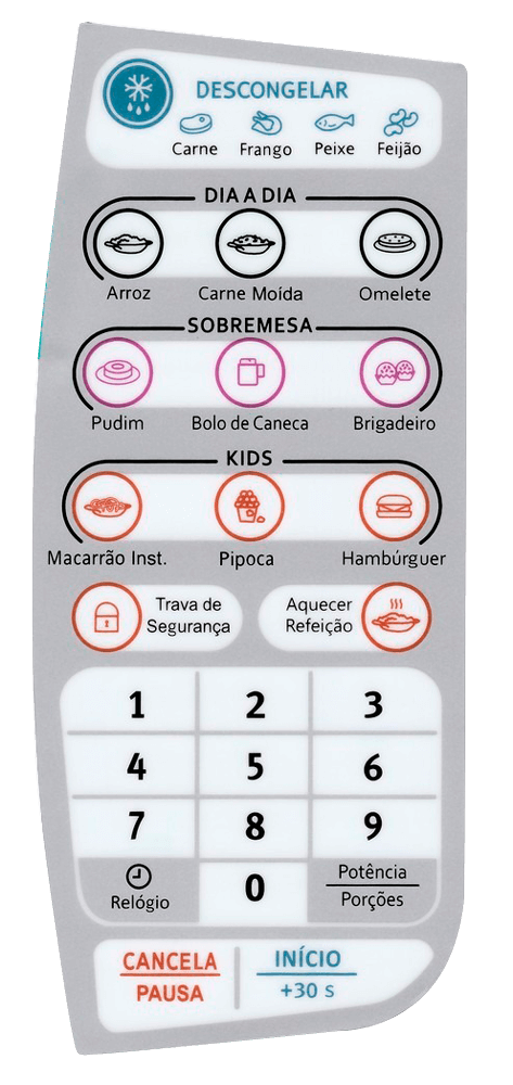 desgastada do painel de controle do micro-ondas.