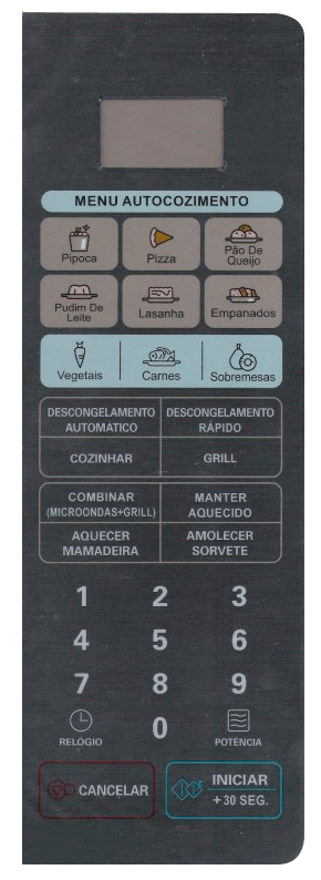 desgastada do painel de controle do micro-ondas.
