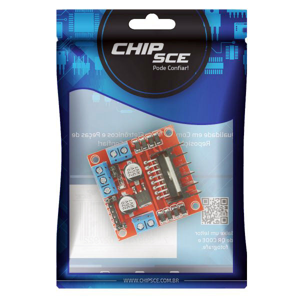 Este Driver Ponte H é baseado no chip L298N, construído para controlar cargas indutivas como relés, solenoides, motores DC e motores de passo.