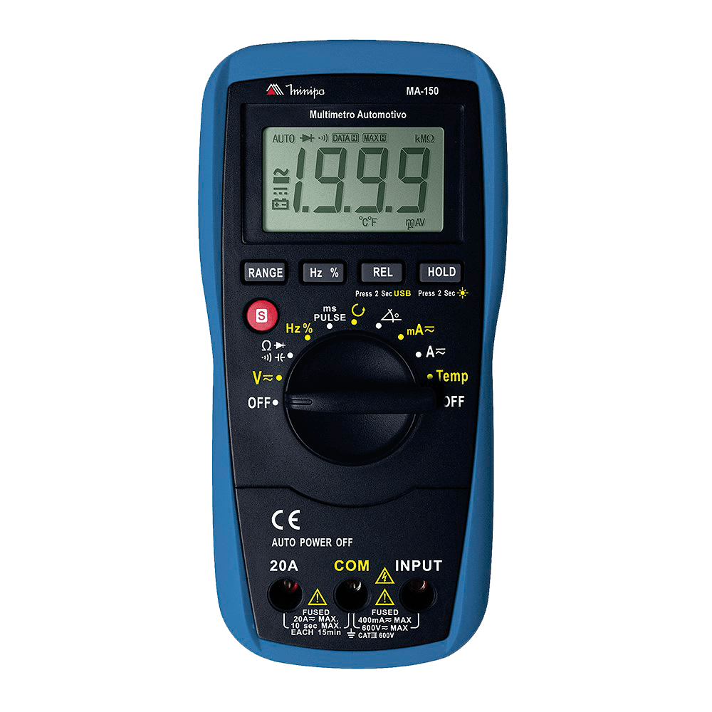 O modelo MA-150 possui funções específicas da área automotiva, tais como RPM, Dwell (Ângulo de Permanência) e Duty Cycle (Ciclo de Trabalho). Além disso, possui faixas mais amplas e a possibilidade de comunicação com o computador.