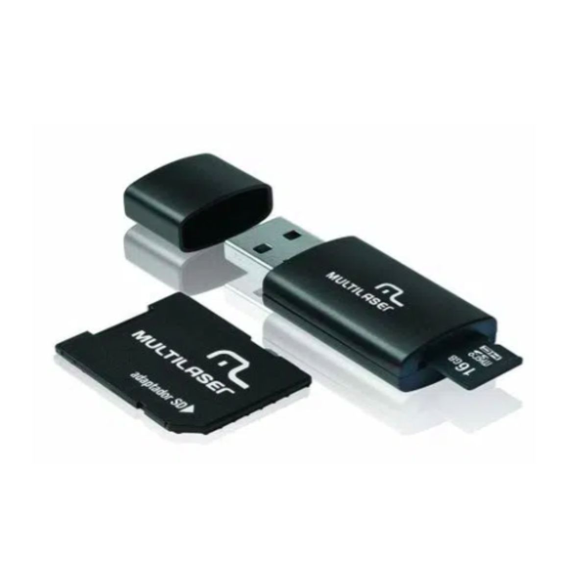 - Pen Drive Multilaser 16GB. KIT 3X1 PENDRIVE + ADAPTADOR + CARTÃO DE MÉMORIA Classe 10 Preto