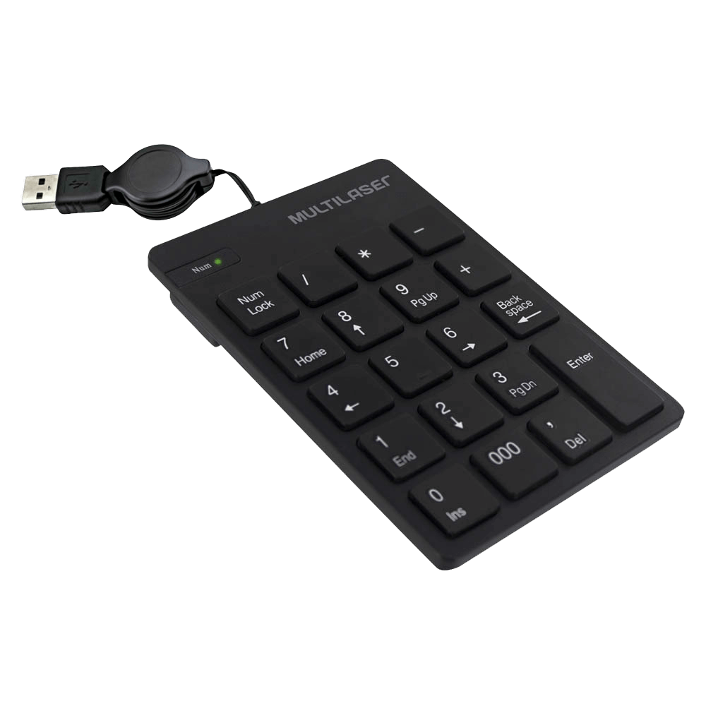 Teclado Numerico Multilaser com Fio Retratil USB Preto - TC198