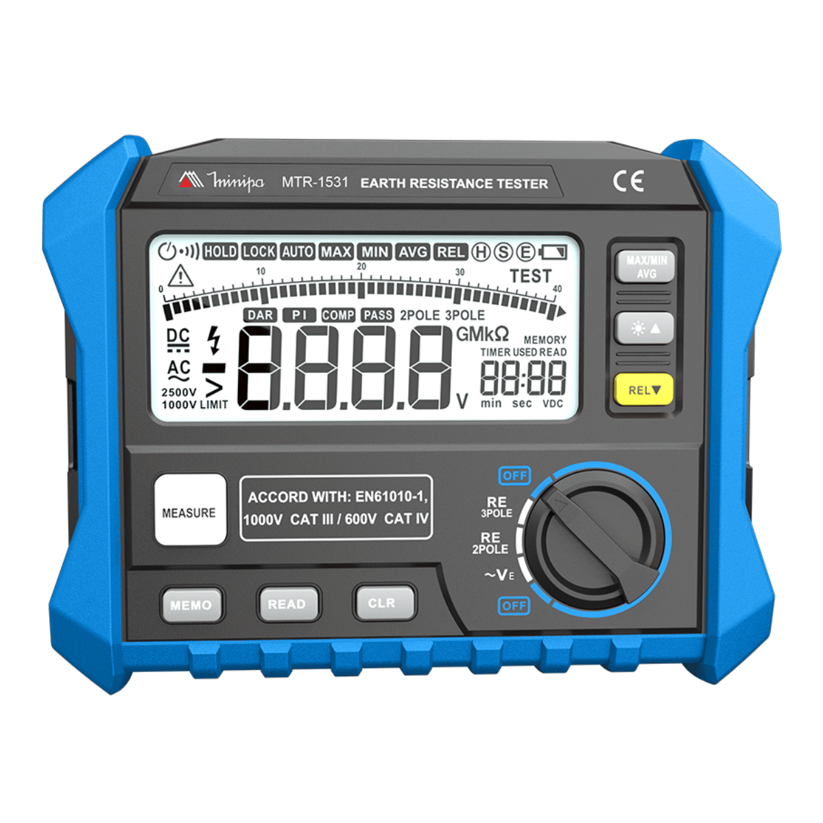 O multímetro digital MTR-1531 é uma ferramenta de medição elétrica de alto desempenho, com display LCD de 3 2/3 dígitos e 3000 contagens. Possui iluminação no display, indicador de bateria fraca e congelamento de leitura. Com faixa de medição de tensão AC de 0V a 200V e resistência de 3Ω a 4kΩ, oferece precisão básica de ±2% + 6D. Com 100 registros de memória e autodesligamento, é ideal para aplicações em eletrônica, elétrica e manutenção industrial. Com classificação de segurança CAT III 1000V / CAT IV 600V, o MTR-1531 inclui alimentação por 8 pilhas AA e garantia de 1 ano.
