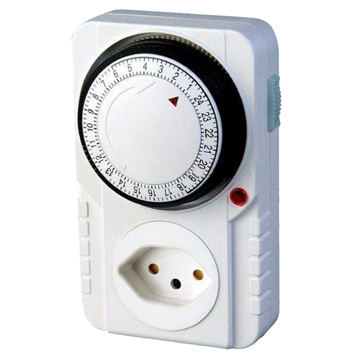O timer analógico Exatron permite a temporização de cargas diversas com períodos de 15 min até 24h.