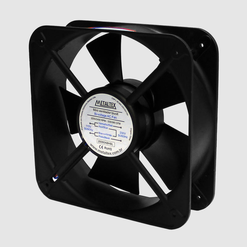 Ventoinha 200x200x60 mm Bivolt Metaltex, Equipamento de excelente rendimento, compacto e silencioso. Fabricados dentro das normas, atende diversas aplicações, tais como: uso industrial, fonte de alimentação, eletrodoméstico, computadores e etc.